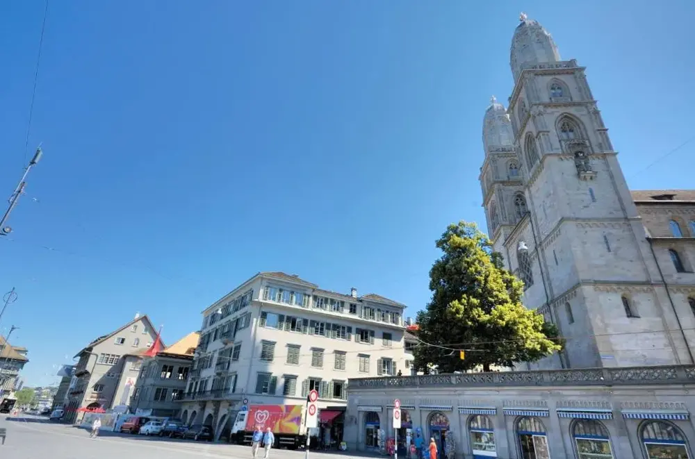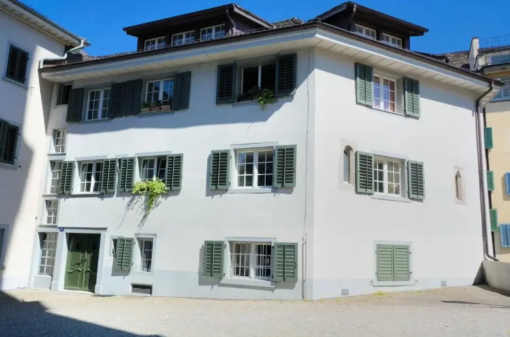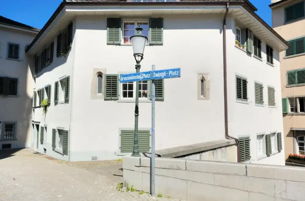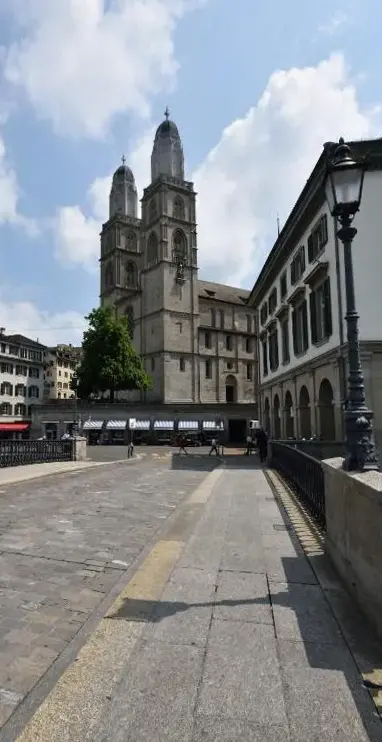 Ich sage nicht, dass das schlecht ist, aber wenn Sie schweres Gepäck haben, müssen Sie auf Stufen vorbereitet sein. Vom Straßenniveau gibt es einen Aufgang zum Großmünsterplatz und dann 3 Aufgänge bis zum Dachgeschoss.